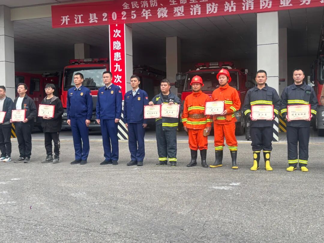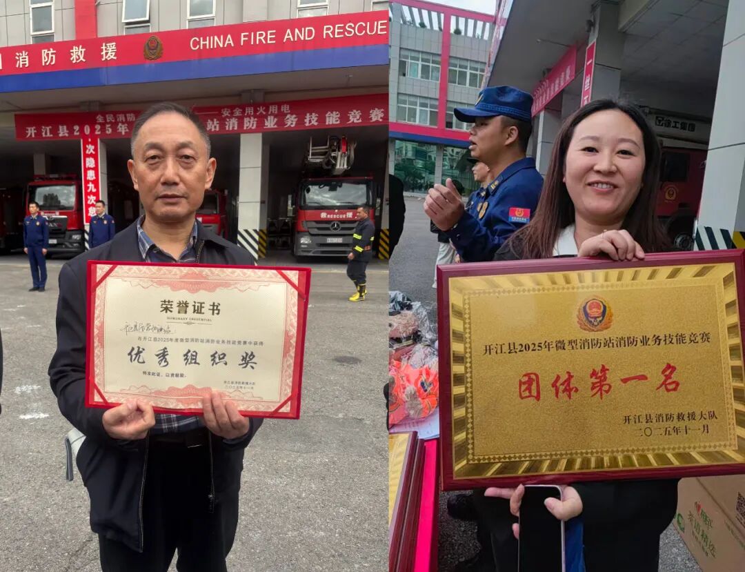 2025年开江县微型消防站业务技能竞赛圆满落幕,省协会开江办事处受邀参与当地消防大队组织的专项消防演练,凭借过硬本领斩获团体第一名以及优秀组织奖等佳绩。